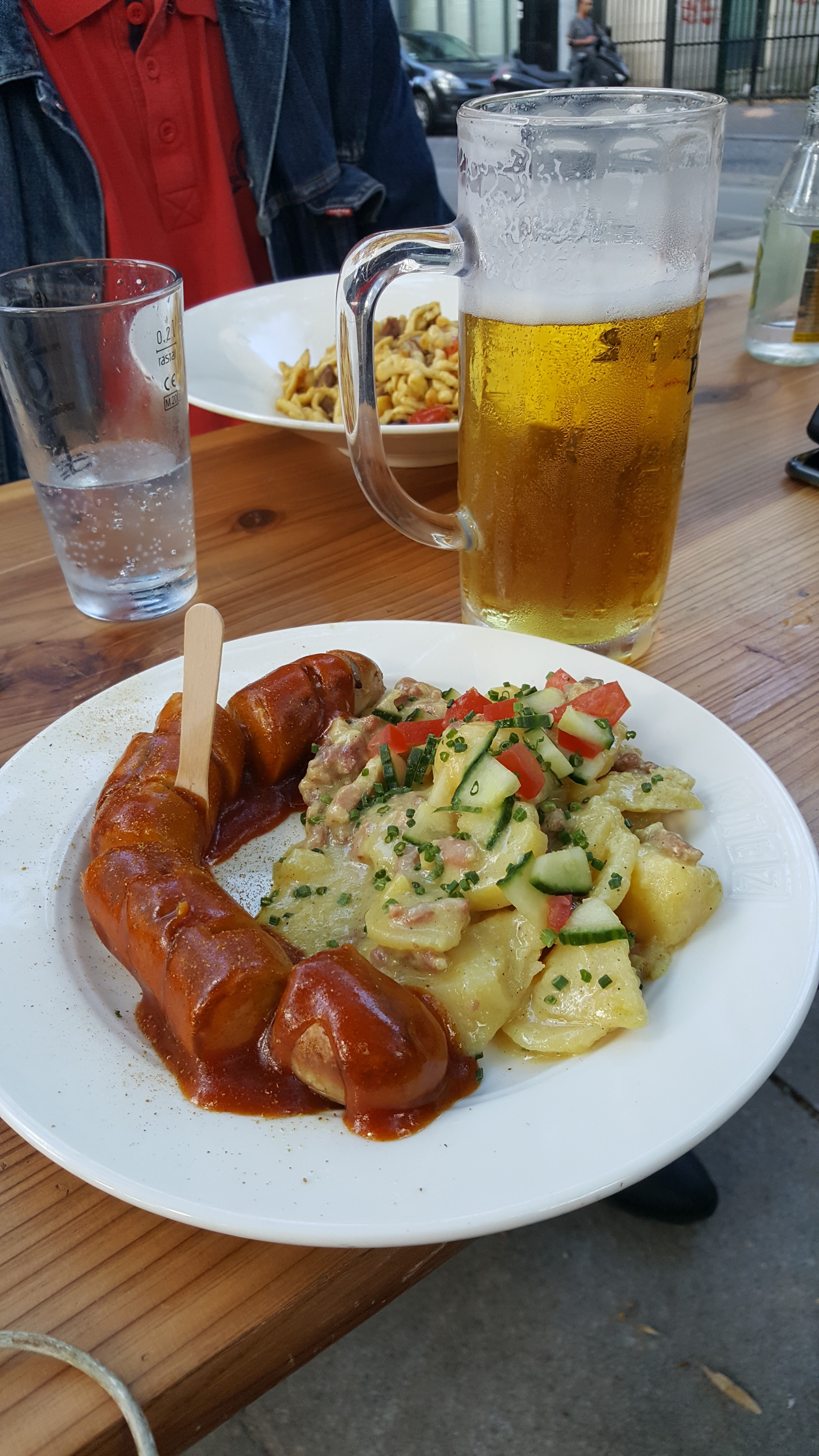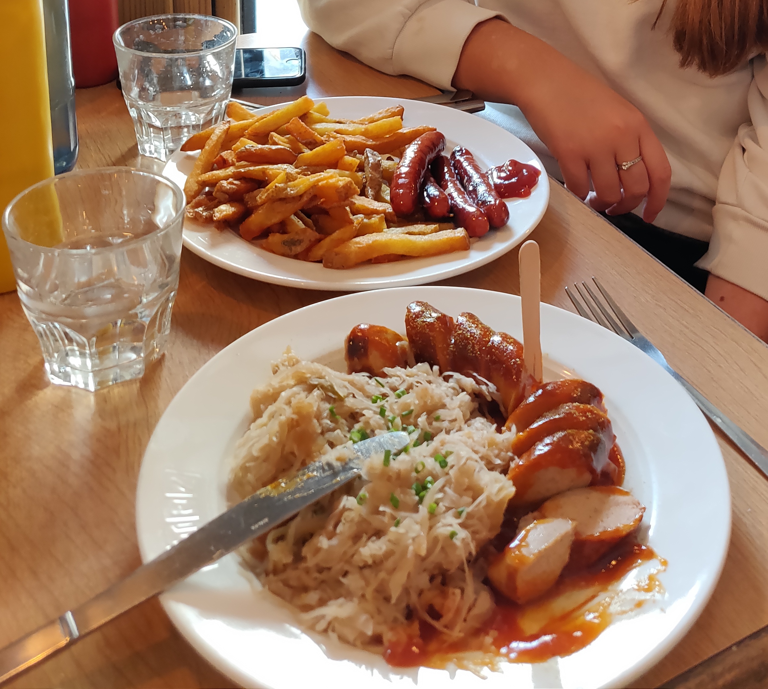 Une ‘Currywurst’ presque aussi bonne qu’à la maison et un choix prestigieux de bières allemandes en pression… 😋